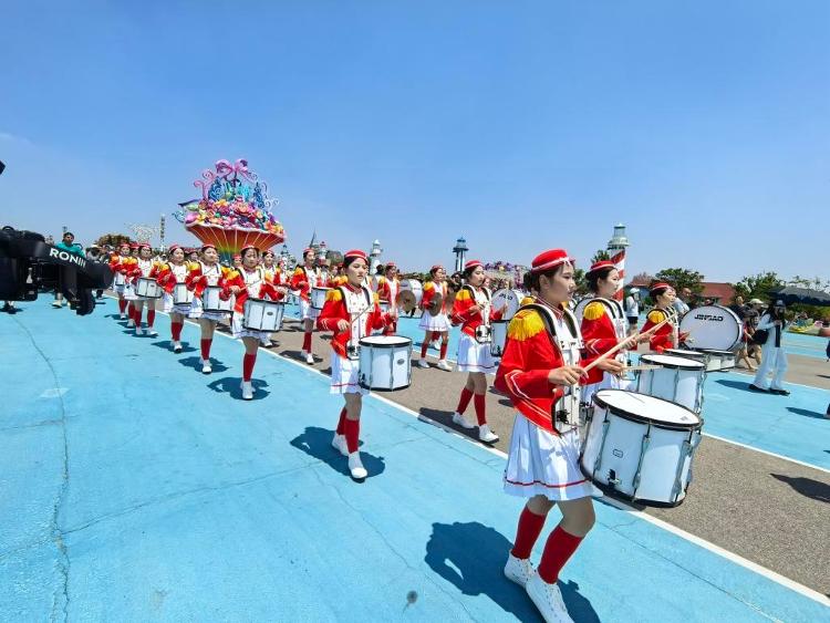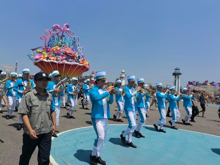 开城现场,少女仪仗队、萨鲁特管乐团用热情点燃全场。