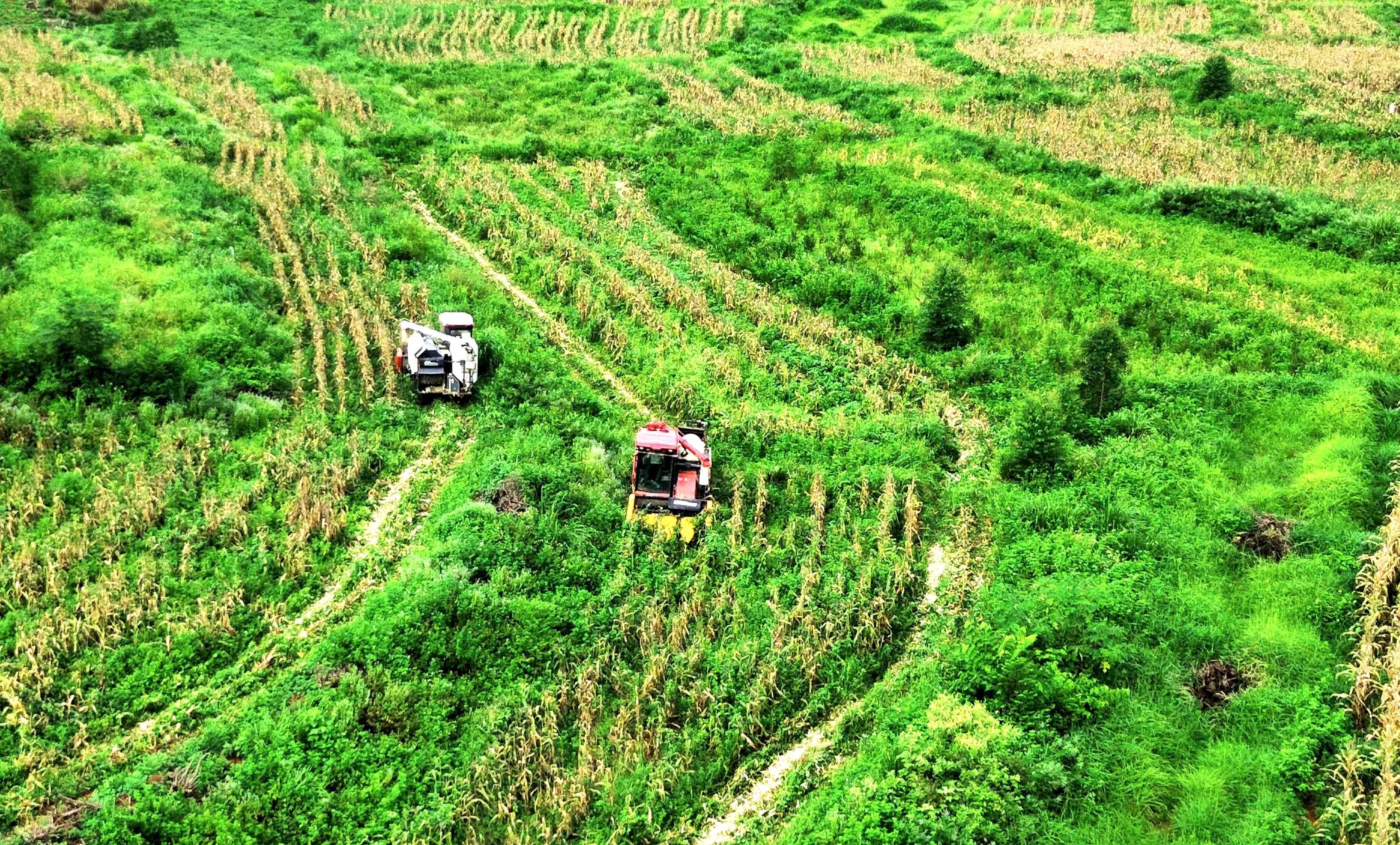 “以前人工收玉米,一个人一天最多收一亩地。现在可好了,一台收割机一小时就能收15亩,再也不用费劲掰苞谷、砍苞谷秆了,省心又省力。而且秸秆打碎直接还田,既保护了环境,又给土地添了肥力。”洞石村种植大户卢家树高兴地说。